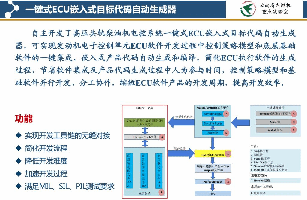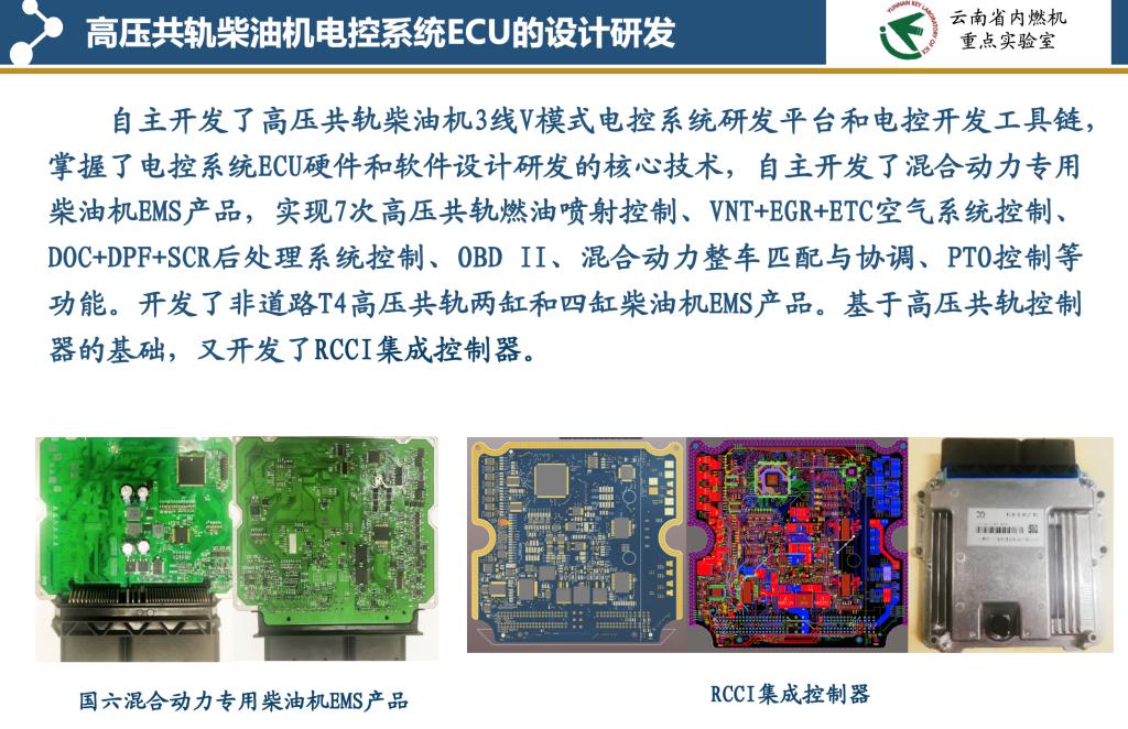 昆明理工大学云南省内燃机重点实验室位于春城昆明,拥有16套满足从0~5500米不同海拔的发动机性能与国六排放测试试验系统。拥有60余人长期从事内燃机研究与教学的团队,具备本科、硕士、博士人才培养能力。通过产学研合作,自主开发了一体化ECU嵌入式目标代码自动生成器、发动机控制与测试产品LabECU、非道路T4柴油机控制器、混合动力专用柴油机控制器、RCCI集成控制器等产品。可承接内燃机及其相关智能动力装置控制器开发、国六内燃机产品的试验测试及高原性能标定等研究与开发工作。