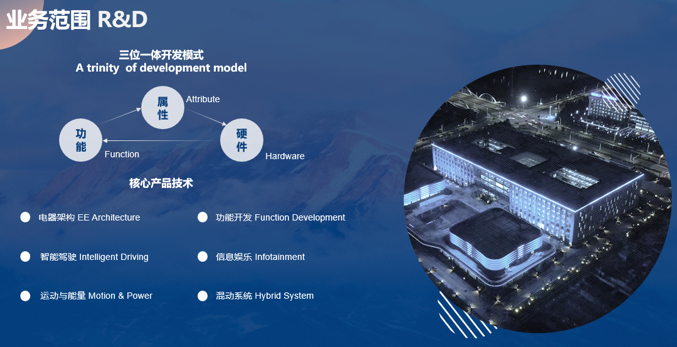 智能电子软件中心(下文简称“中心”)致力于智能、网联、共享服务和电驱系统的智能化开发。核心技术产品涵盖整车运动与能量、混动系统、电器架构、功能开发、智能驾驶、信息娱乐等诸多领域。