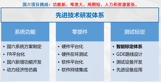 中心采用智能标定体系、软硬件平台化开发、先进试验和测试方法、智能标定工具等多重智能化体系布局,推动内燃智能技术领域的产品落地。