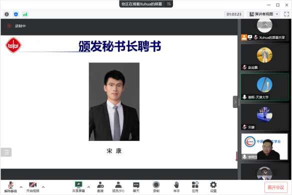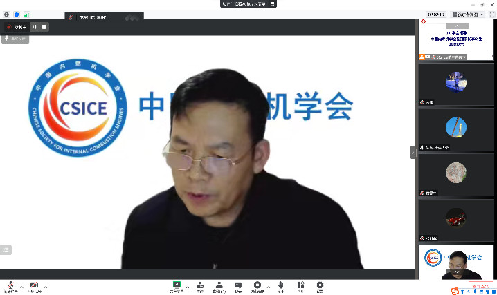 中国内燃机学会第八届理事会内燃动力智能技术分会秘书长宋康副教授代表分会作了工作报告。在成立后的短短两年中,分会秘书处在总会领导的指导下,组织了第一届学术年会、世界内燃机大会控制与测试技术分会场、2021中国车辆控制与智能化大会、交通能源与智能动力大会智能动力分会场共4次大型学术会议,邀请了51个特邀报告,征集了307篇论文,累计18万人次观看了会议直播。建立了专属的网站,累计分享行业动态42次,发布学术信息通知公告26次,发布分会新闻20次,分享委员单位成果2次,发布分会特邀学术报告信息41次。组织了首届“内燃动力智能算法挑战赛”,吸引了海内外31支赛队,组织了7次赛事讨论交流会议,超过500人次直接参加了讨论,微信答疑群讨论消息近1000条。分会在行业内掀起了一场内燃动力智能控制算法的讨论热潮,拉动了自动控制、内燃动力的交叉合作。